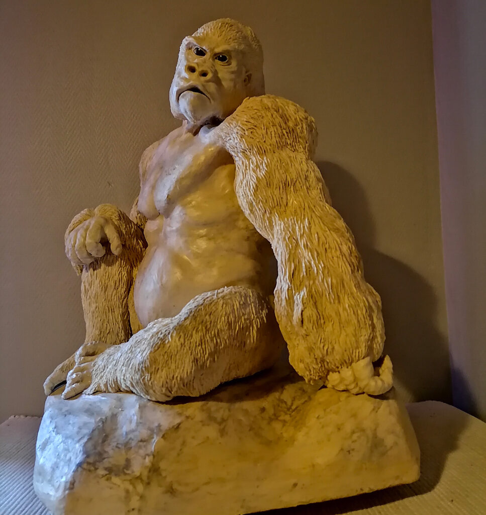 En reconnaissance de sa majesté et de sa vulnérabilité, une statue de gorille a été créée pour l’exposition « Grands Primates » au Jardin des Plantes en 2023. Cette sculpture, réalisée en bronze pour évoquer la permanence et la résilience, sert d’emblème à la cause de la conservation des espèces menacées.